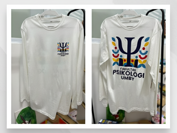 Warna putih melambangkan niat murni dan pikiran jernih, sementara corak pelangi pada logo mencerminkan empati dan keseimbangan. Kenakan kaos ini dan pancarkan semangat psikologi dengan elegansi.